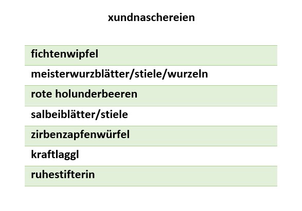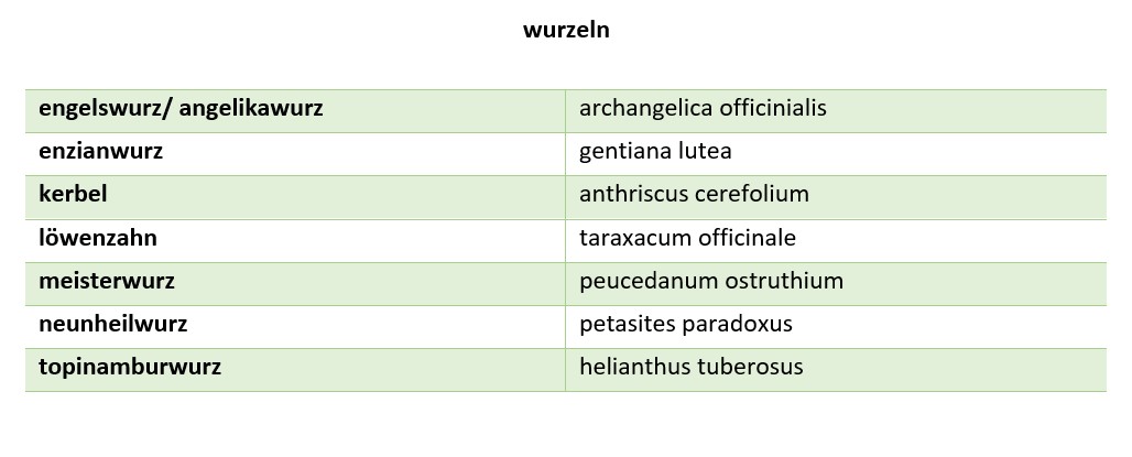 (öle, tinkturen, gewürze, umschläge, heilsnaschereien, zugsalbe, räuchern, sirupe, oxymele ...).
